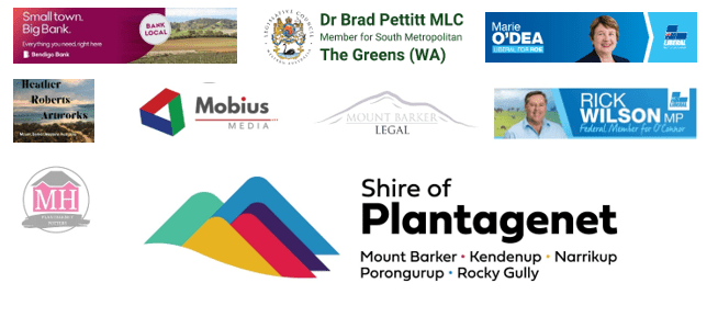 The organisers would like to thank its sponsors: Bendigo Bank, Brad Pettitt MLC, Heather Roberts Artworks, Marie O’Dea, Mobius Media, Mount Barker Legal, Rick Wilson MP, Plantagenet Potters and of Course the Shire of Plantagenet.
